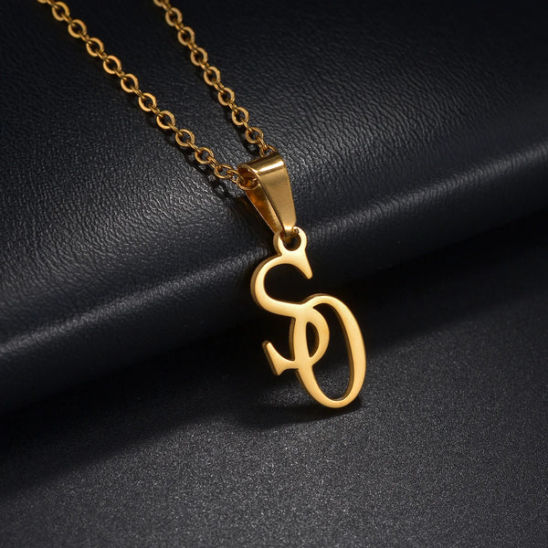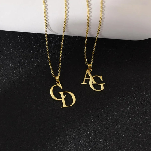 Haiyufly Custom Initial Necklace for Women Stainless Steel Jewelry Choker Chains Personalized 2 Letters Couple Birthday Gift